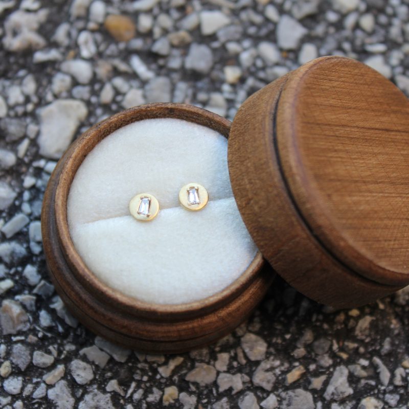 18K Solid Yellow Gold Baguette Diamond Stud Earrings