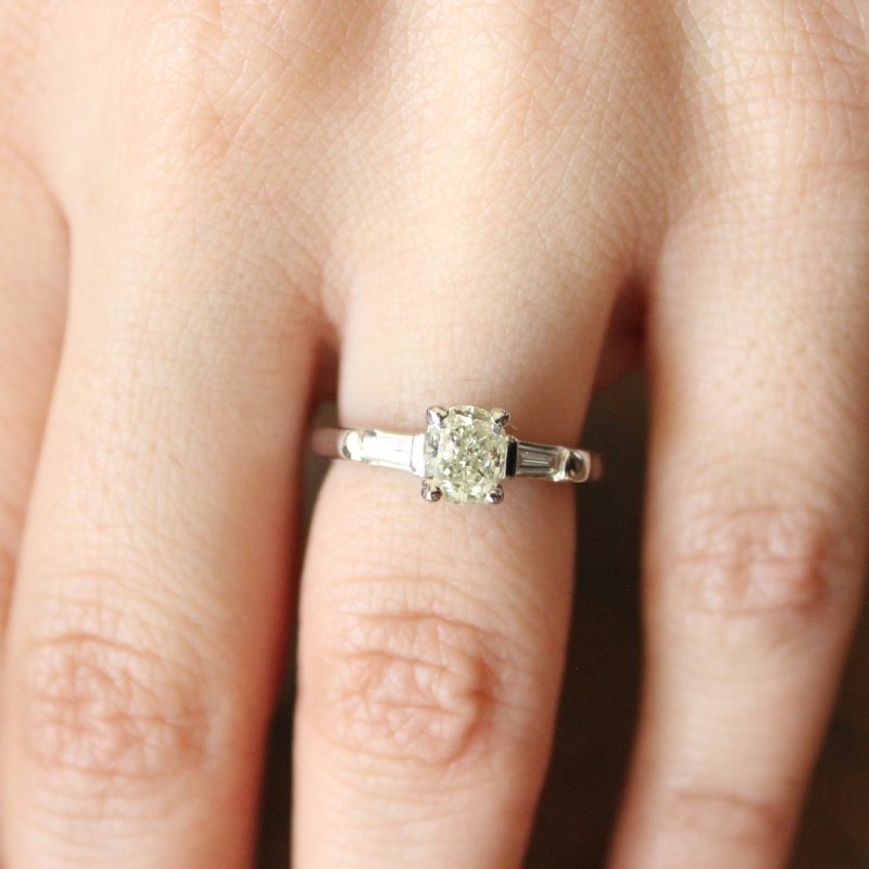 *Pre-Owned* Platinum Certified Fancy Light Yellow Diamond Engagement Ring
