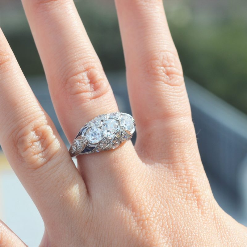*Pre-Owned* Platinum Art Deco Diamond And Sapphire Ring