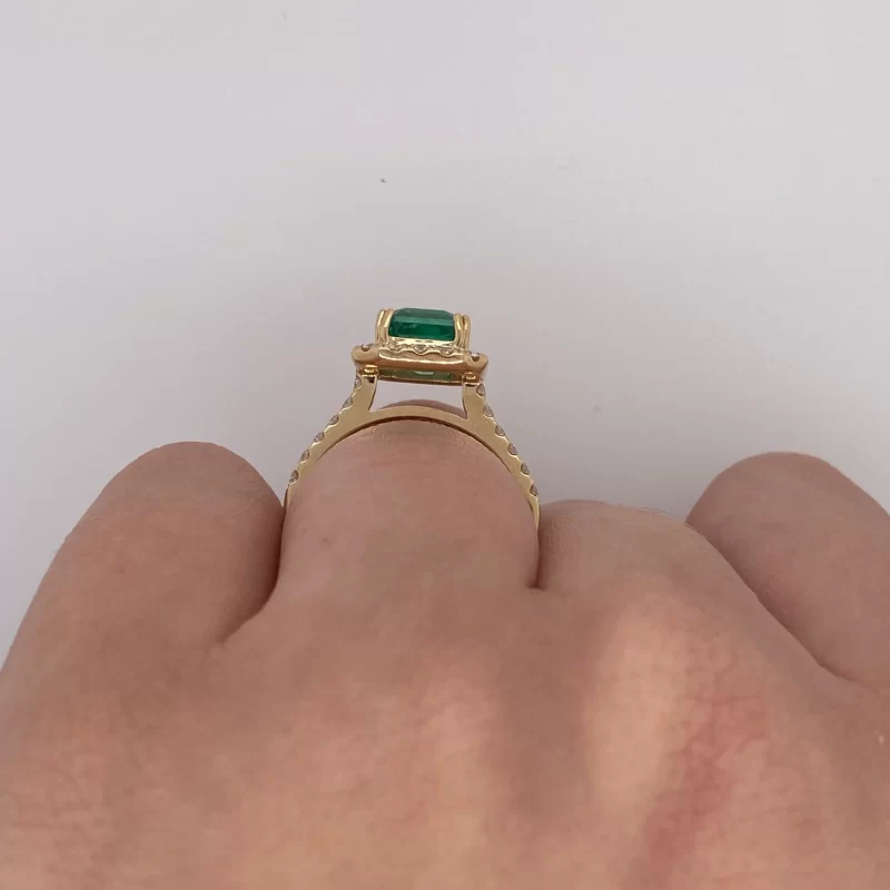 18k Yellow Gold Zambian Emerald Halo Ring