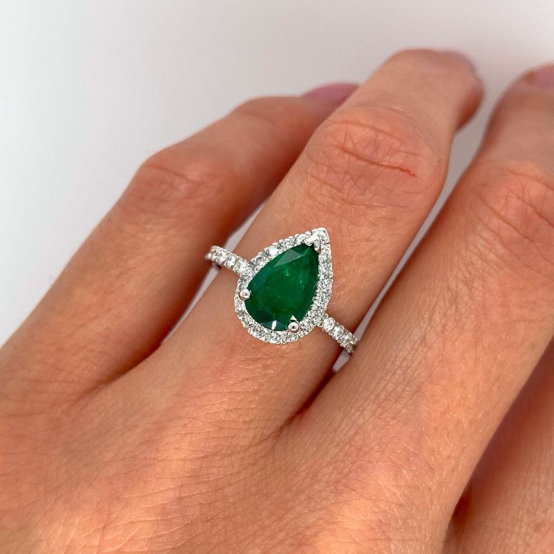 14k White Gold Deep Green Emerald Ring