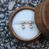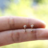 These beautiful and delicate 14k solid rose gold diamond drop studs are set with 2 mm and 1.5 mm (.09 ctw) natural white diamonds.