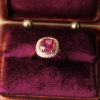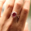 Stunning 14k rose gold ring set with 24 white round full cut diamonds (.24 cts) and an oval natural unheated GIA Certified Pink Sapphire.