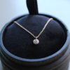 Delicate and thin yet strong and durable, this 14k solid rose gold 1 mm cable chain features a bezel set 0.10 carat round brilliant natural white diamond.