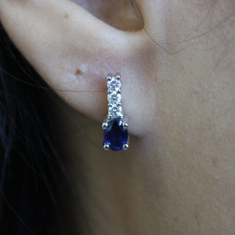 *Pre-Owned* 14K White Gold Sapphire and Diamond Earrings