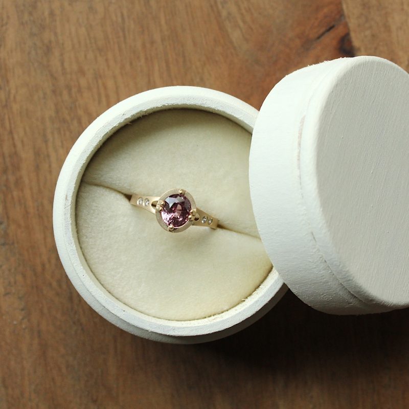 14k Yellow Gold Sri Lanka Pink Sapphire and Diamond Ring