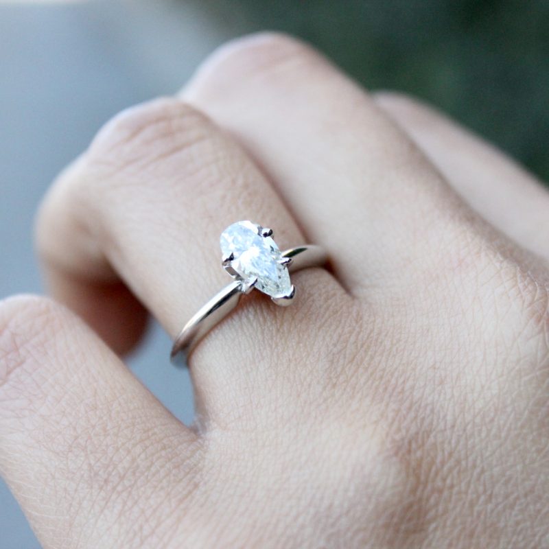 14K White Gold Long Pear Shape Diamond Ring