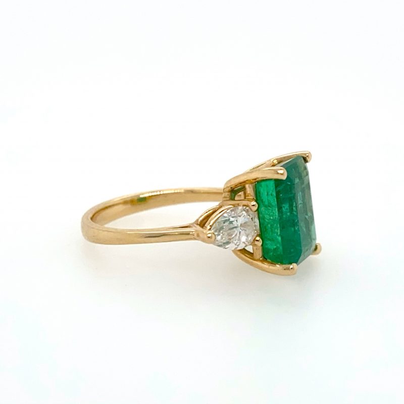 14k Yellow Gold 3.79 Carat Zambian Emerald GIA Certified Ring